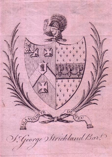 A framed late 18th century bookplate for Sir George Strickland