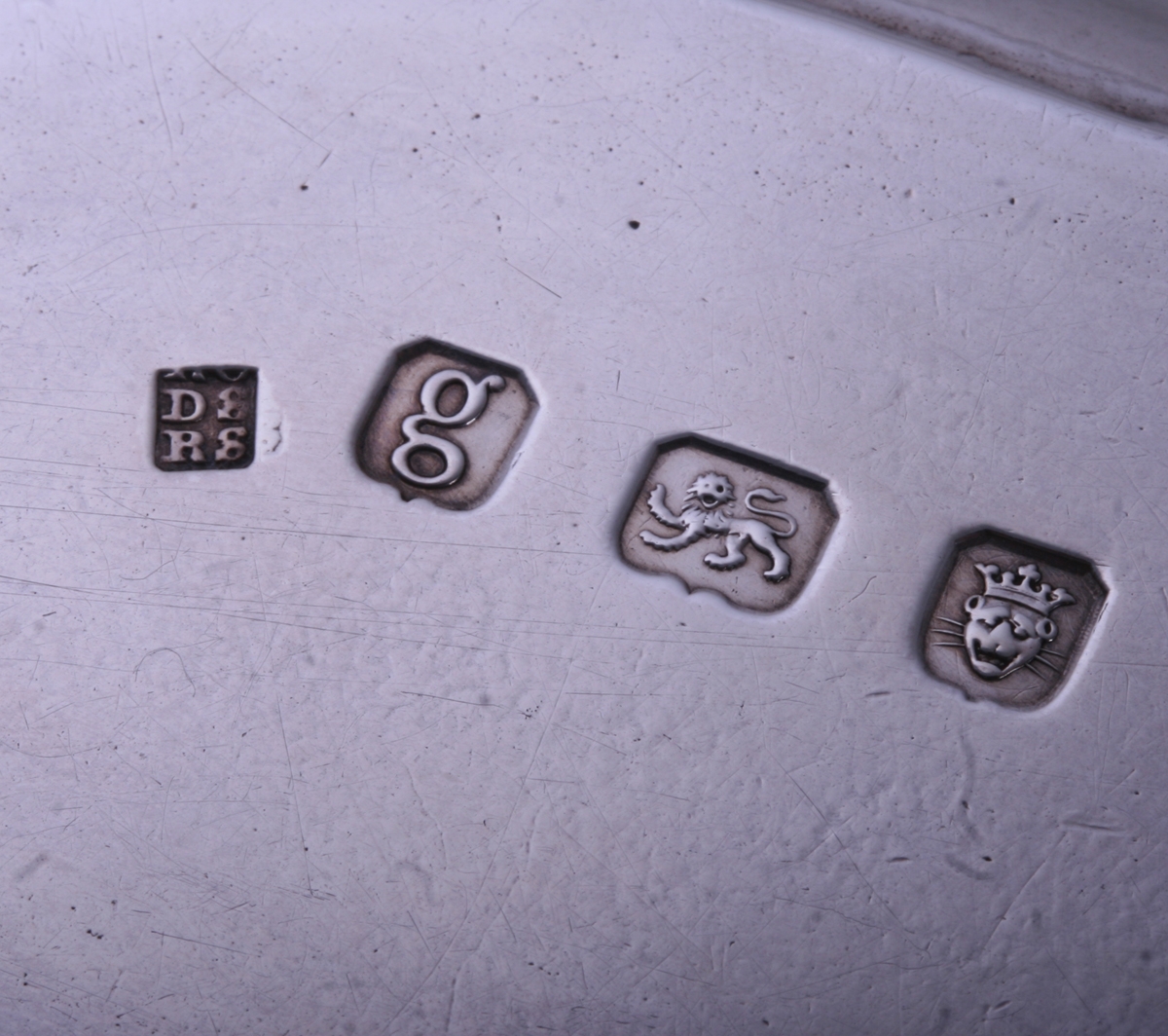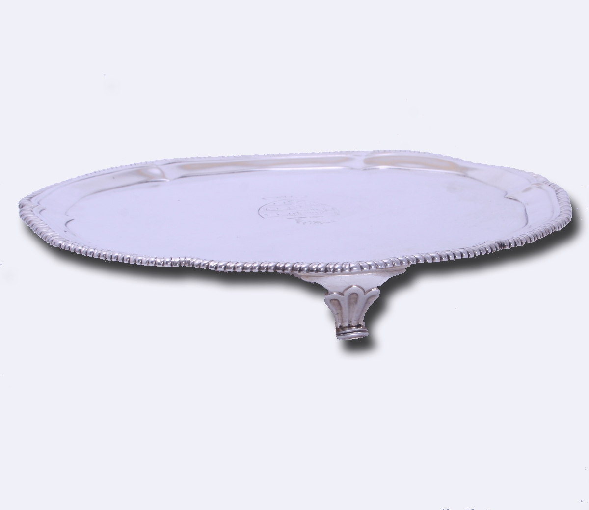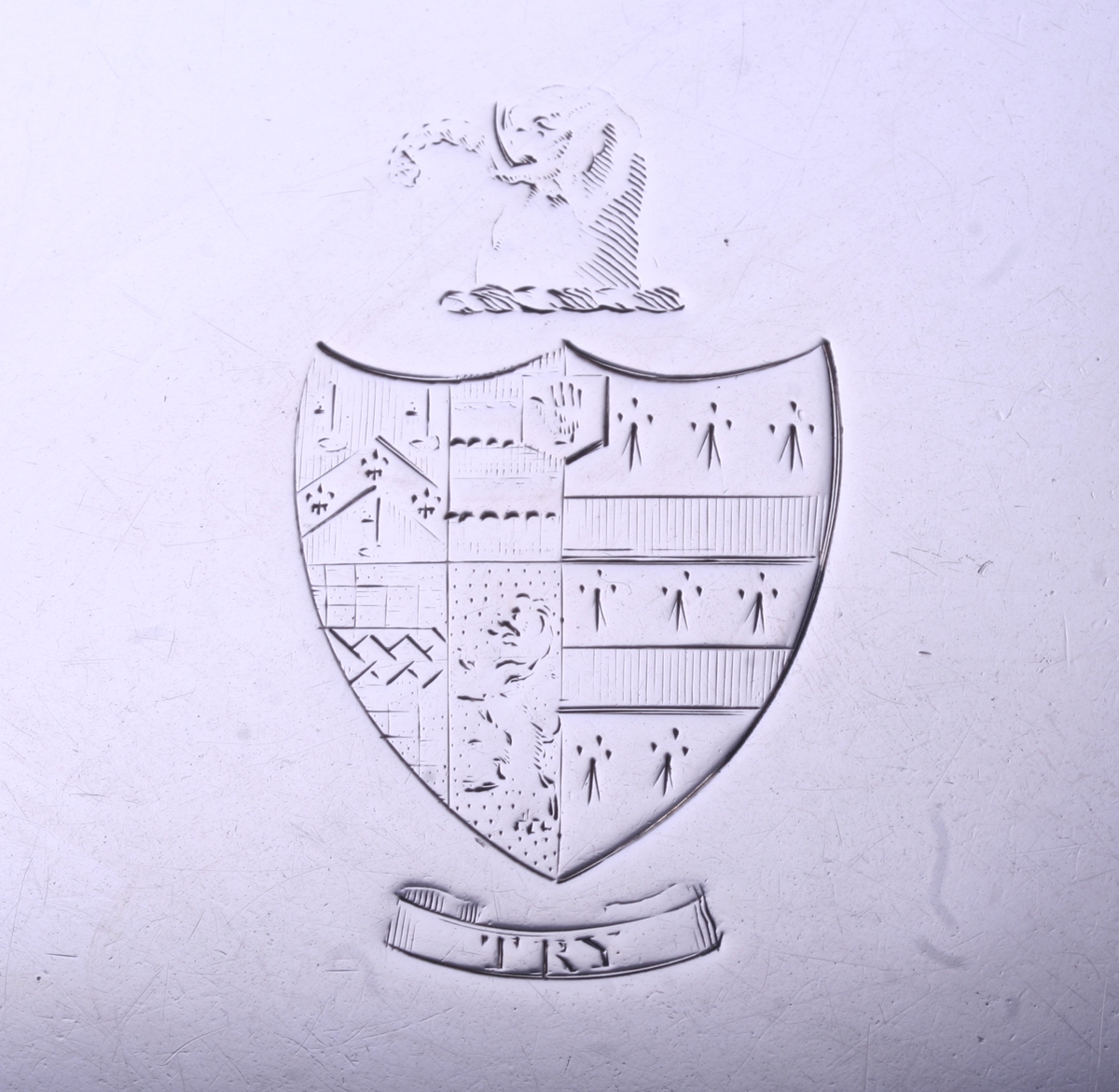 The quartered and impaled coat of arms on each waiter show the shield and crest of Admiral Sir Peter Parker Bt., and his wife Margaret, daughter of Walter Nugent.
