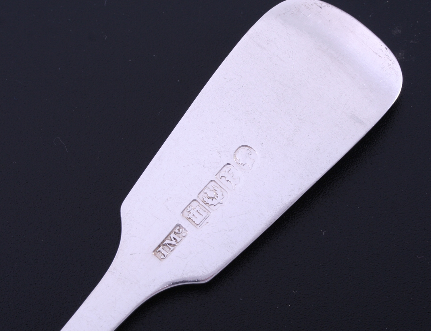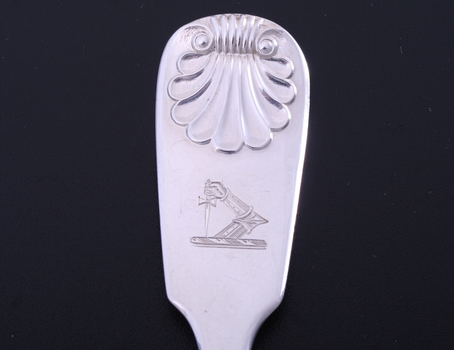 A set of six Scottish Victorian sterling silver fiddle and shell pattern table forks