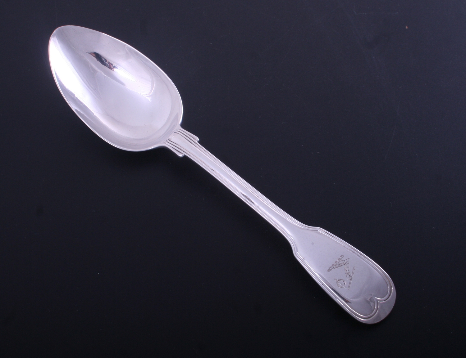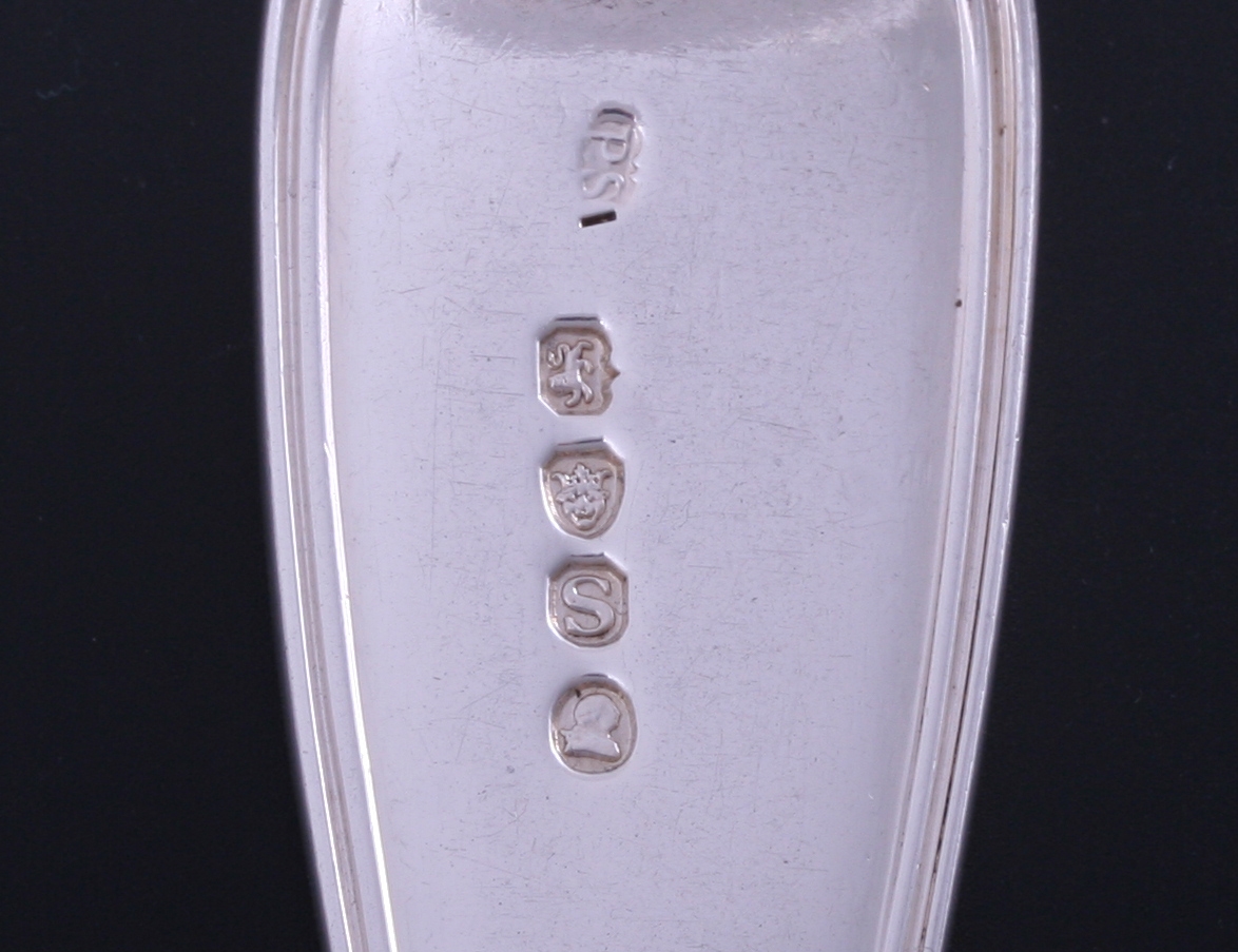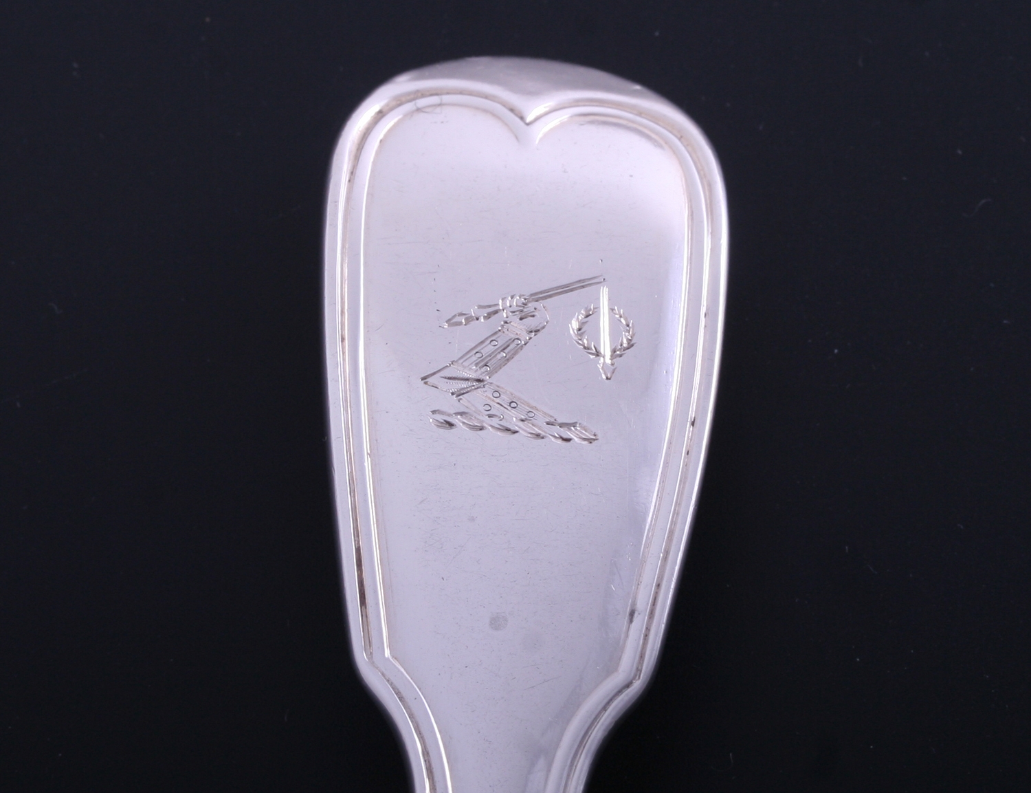a fine fiddle and thread silver table spoon by renowned silversmith Paul Storr, London 1813, engraved with a family crest