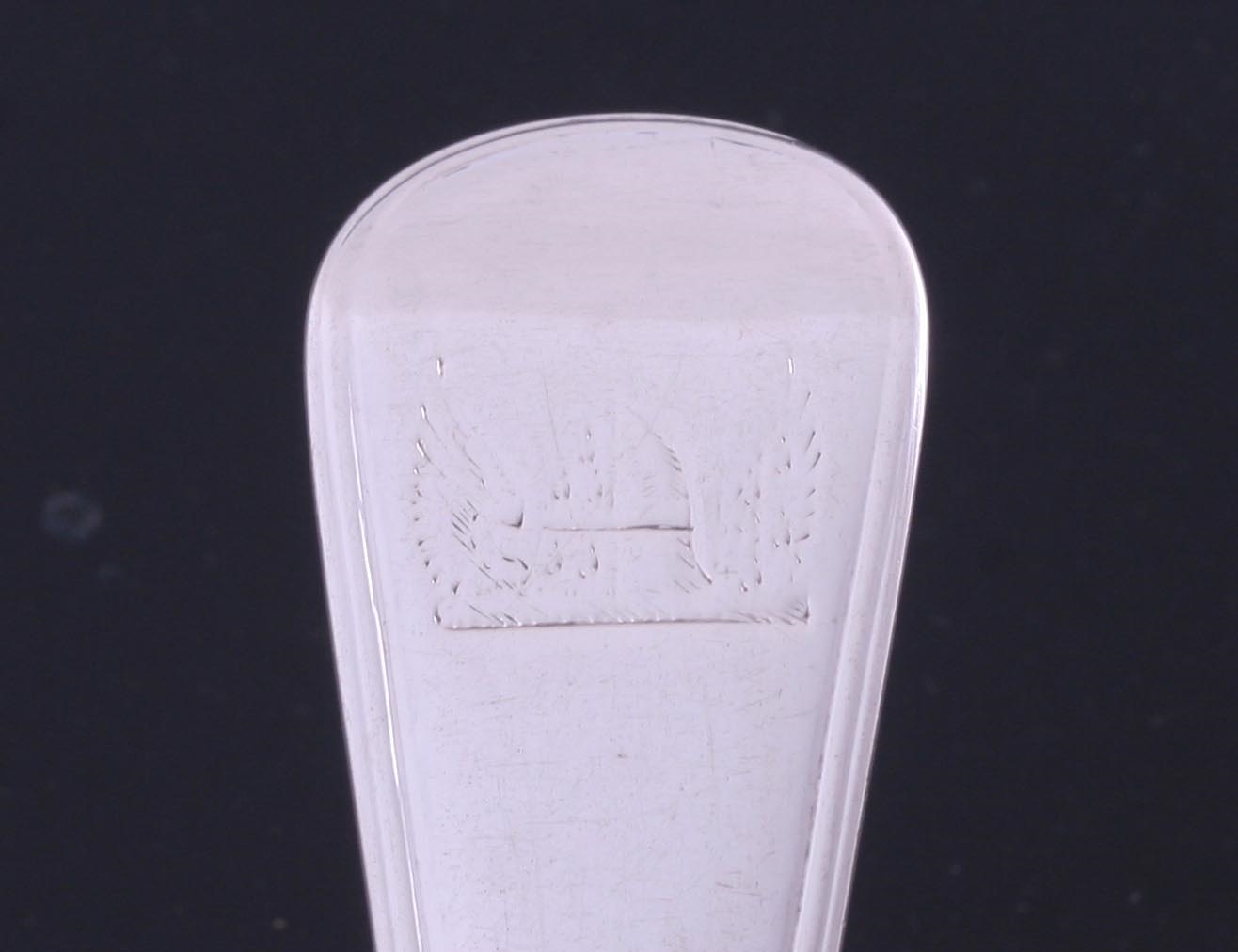 a fine set of ten George III single struck Old English with thread pattern silver table forks, each engraved obverse with a family crest