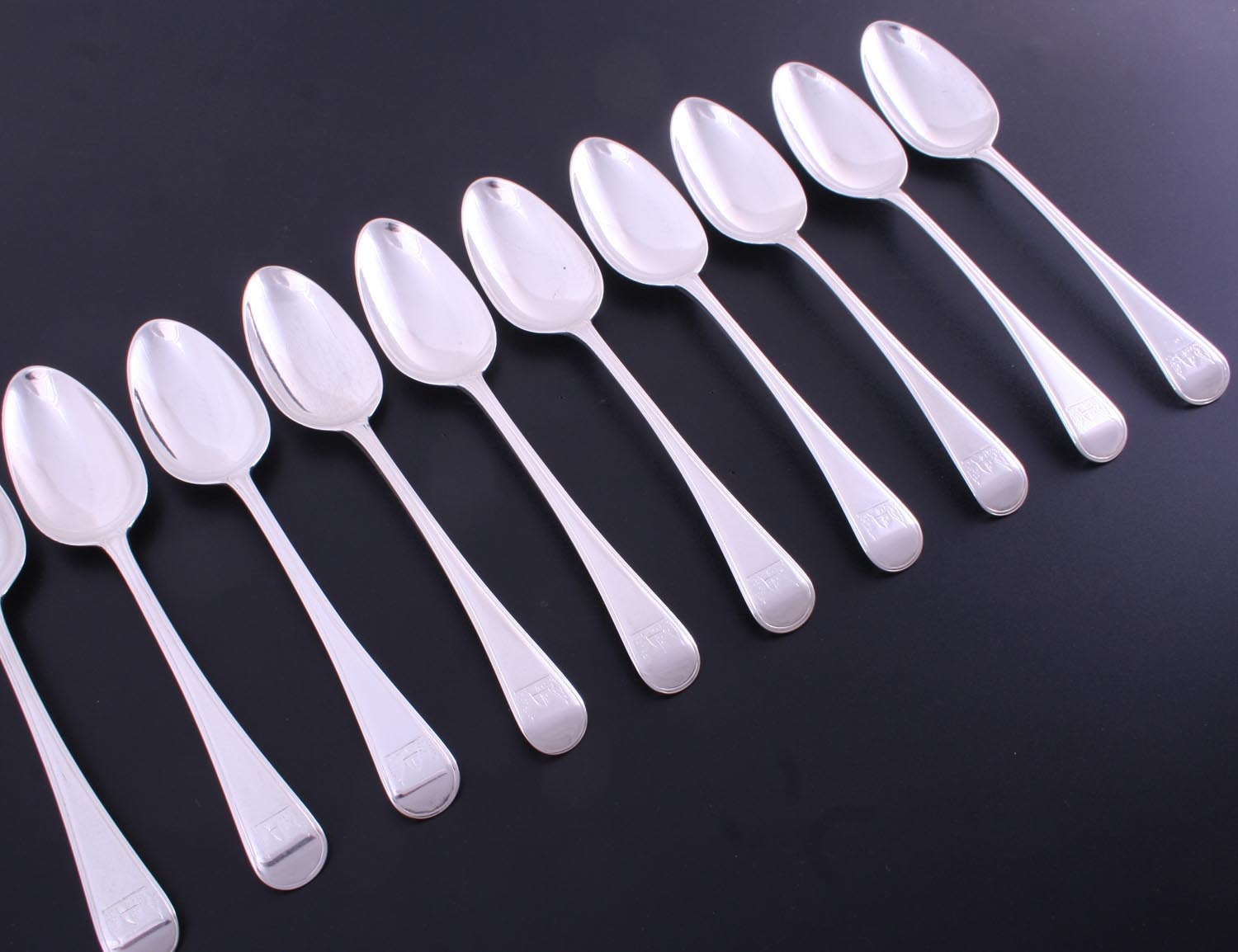A set of ten George III Old English with thread pattern sterling silver table spoons