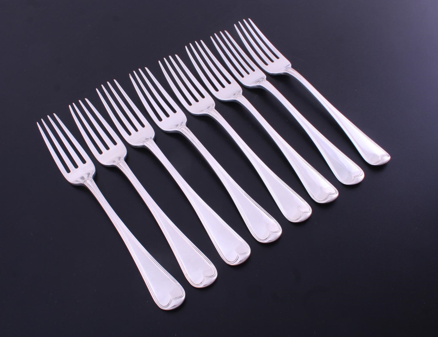 A set of eight George III Old English with thread pattern sterling silver table forks