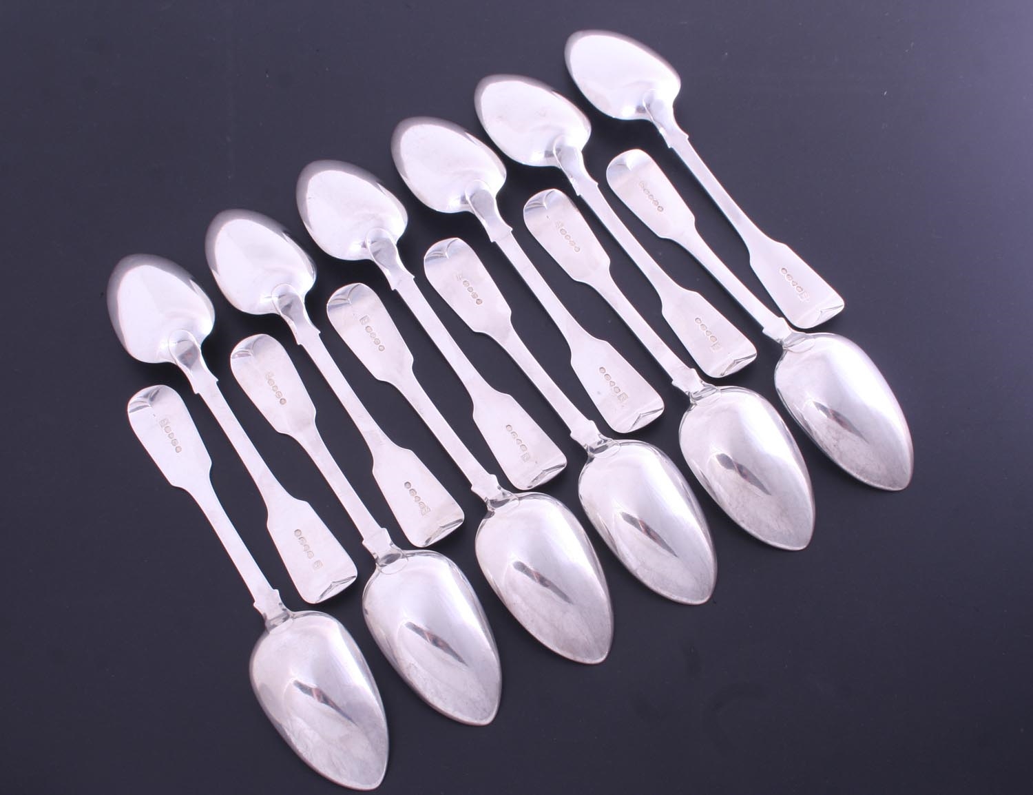 A set of twelve George IV sterling silver fiddle pattern table spoons