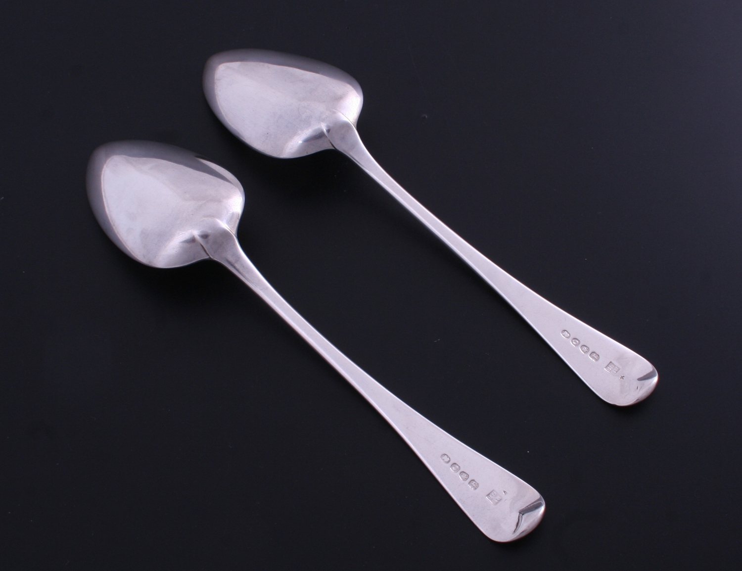 A pair of George III Old English pattern sterling silver table spoons