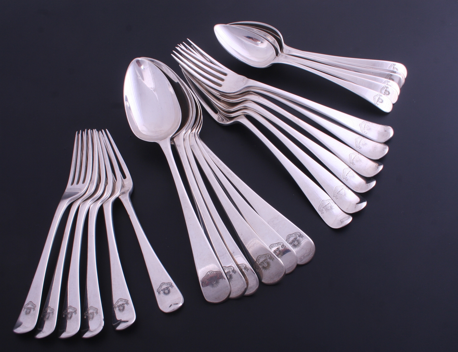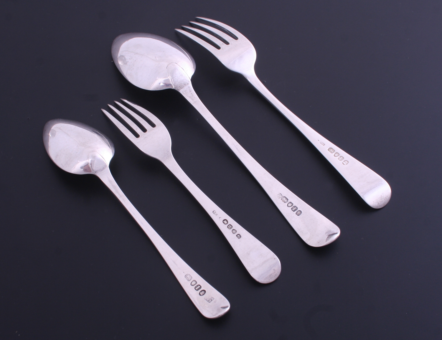 A composite set of Old English pattern spoons and forks in excellent condition.