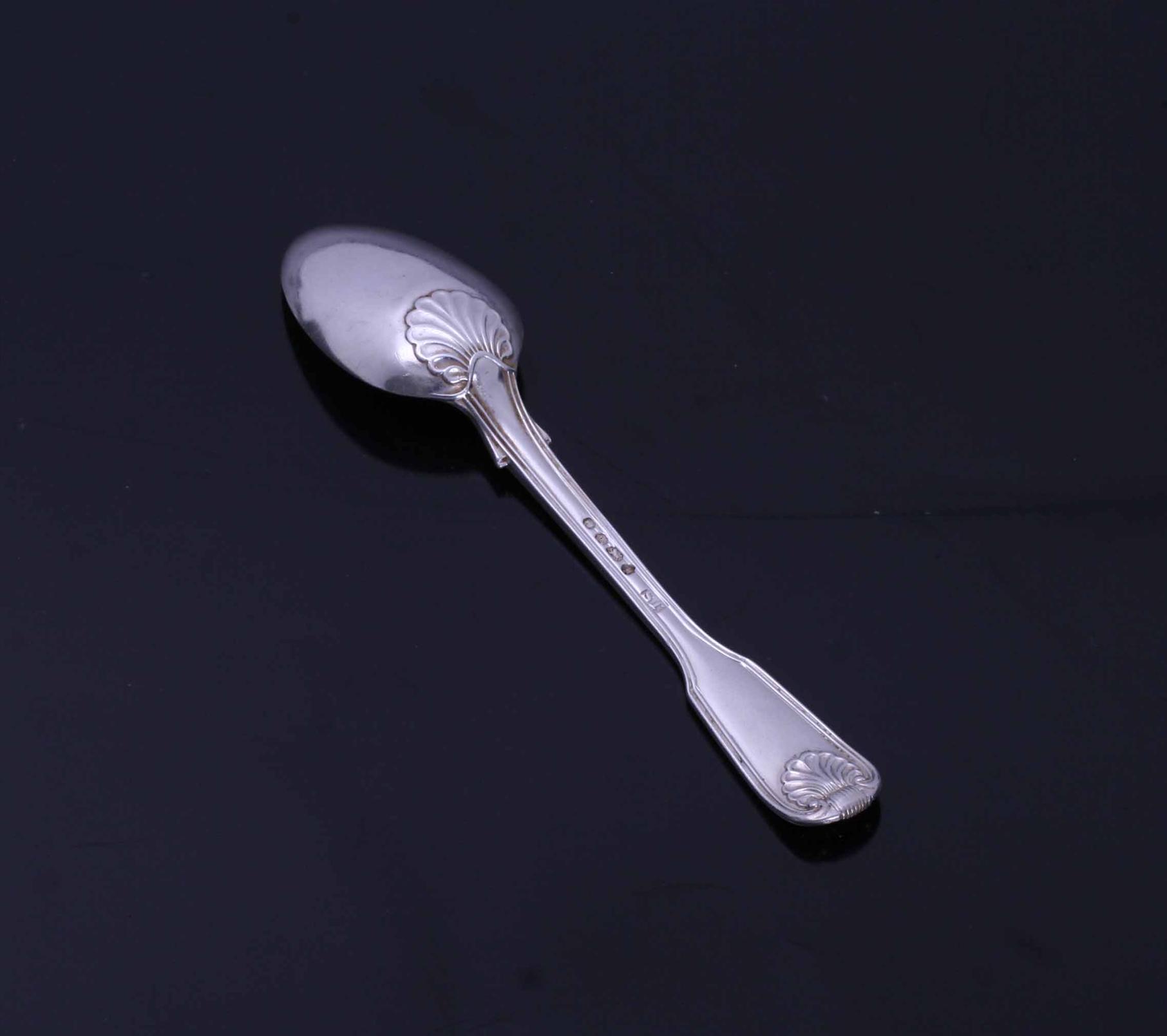 A Victorian sterling silver fiddle, thread and shell pattern teaspoon