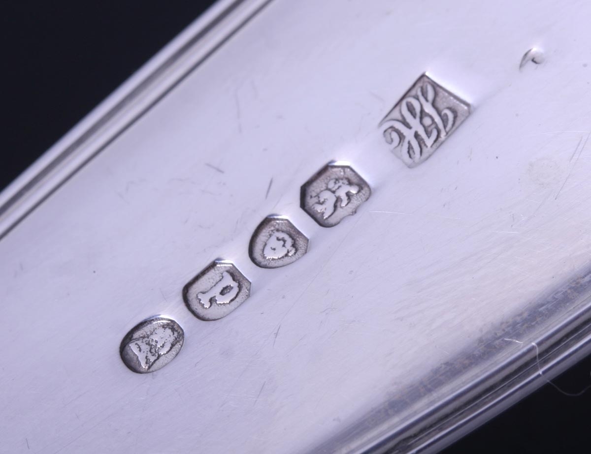 A George IV fiddle and thread pattern sterling silver basting spoon and soup ladle