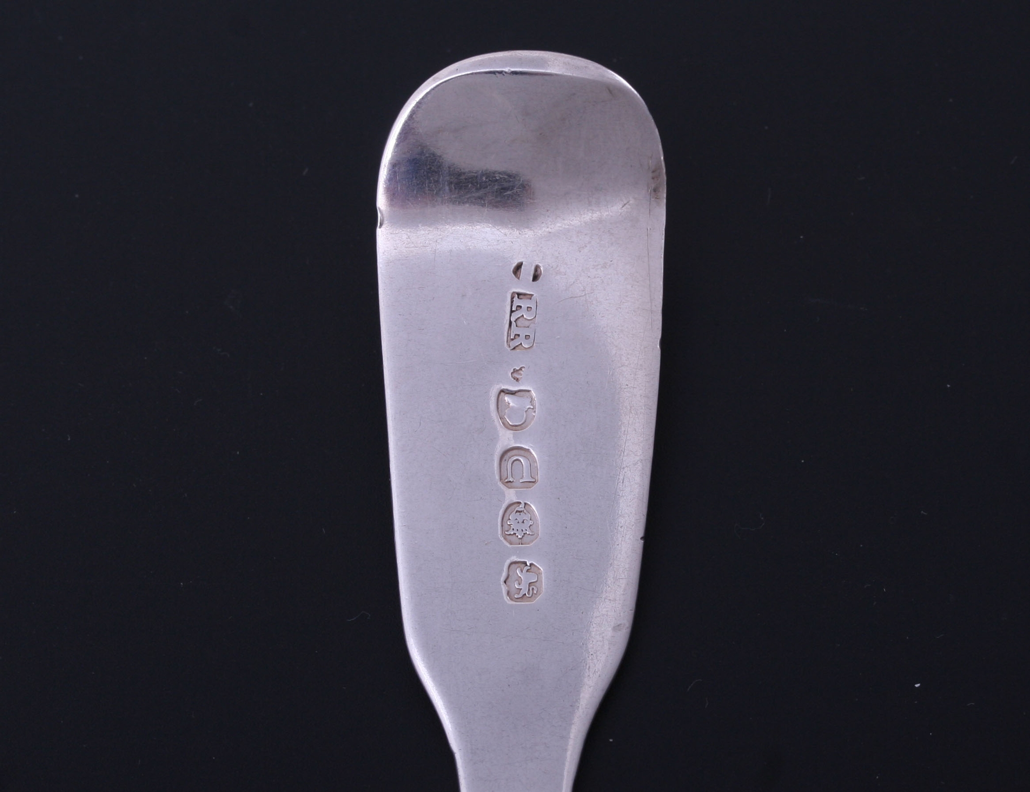 A George IV fiddle pattern sterling dessert spoon