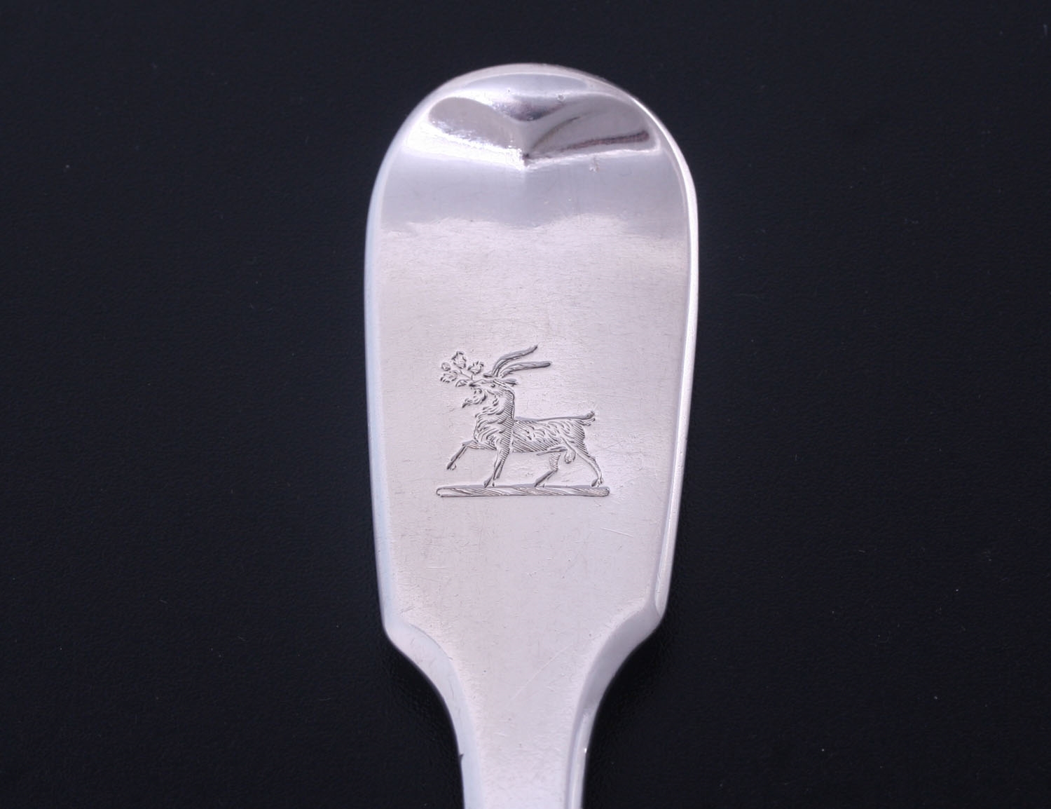a collection of fiddle pattern silver flatware comprising: six table spoons (three by William Eaton, London 1829; two by William Eley & William Fearn, London 1823 and one by George Adams, London 1847) and a pair of table forks by William Eaton, London 1829; each engraved with a matching family crest