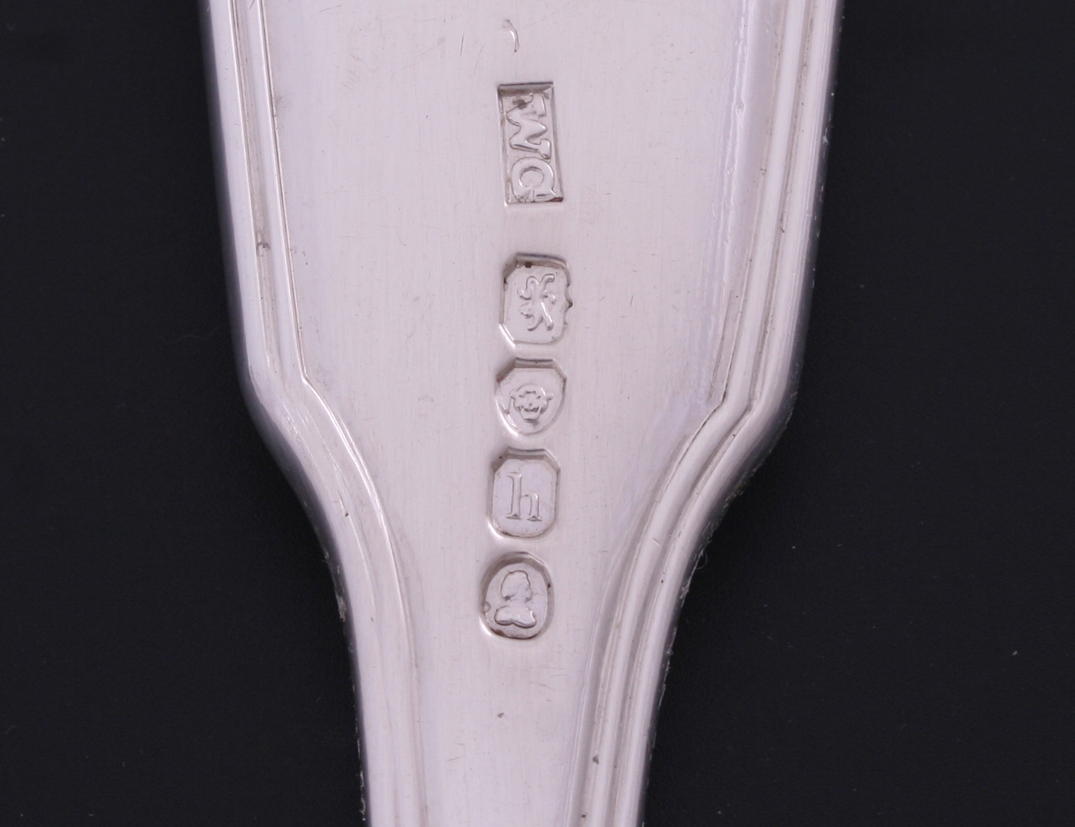 A George IV fiddle and thread pattern sterling silver soup ladle